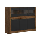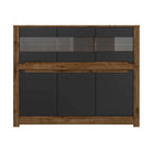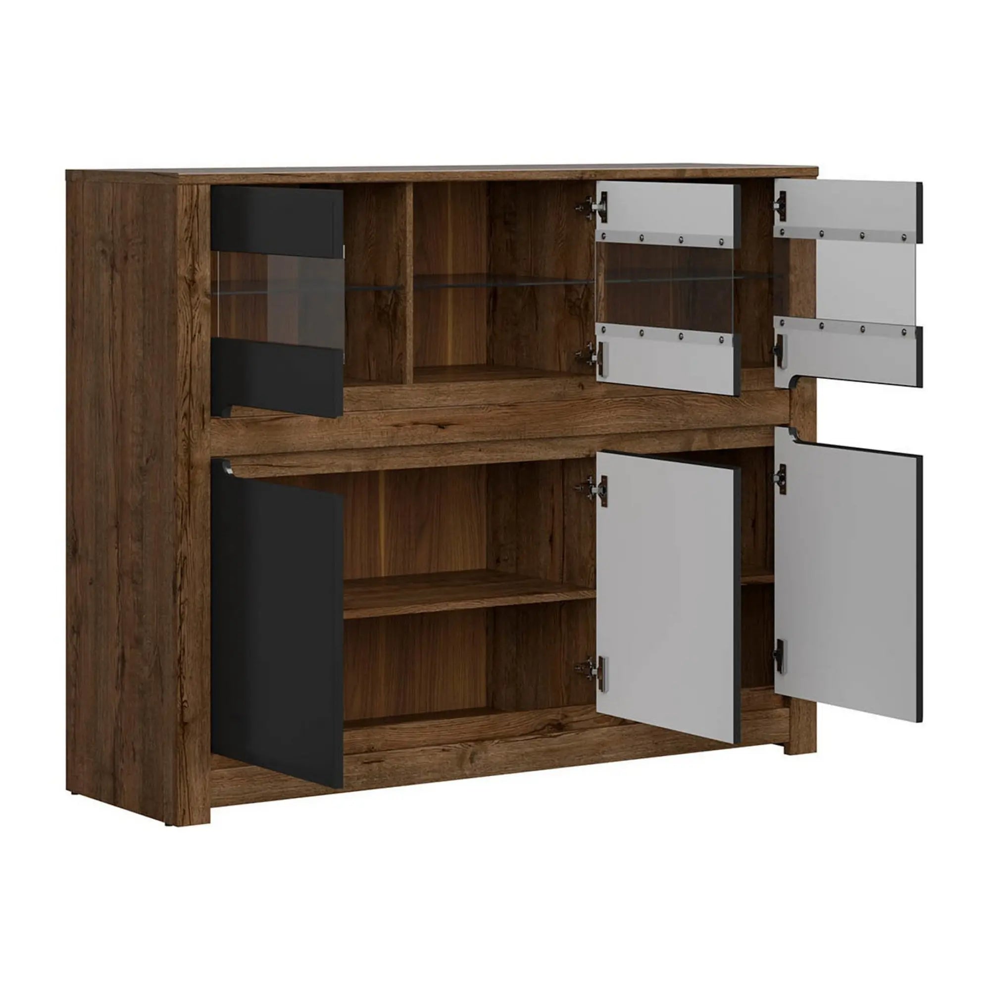 Vitrina RUSO, stejar/negru mat, PAL/sticla, 149x46x121 cm