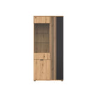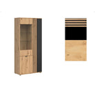 Vitrina VABRES, stejar artisan/negru mat, PAL laminat/sticla, 91x40x196 cm