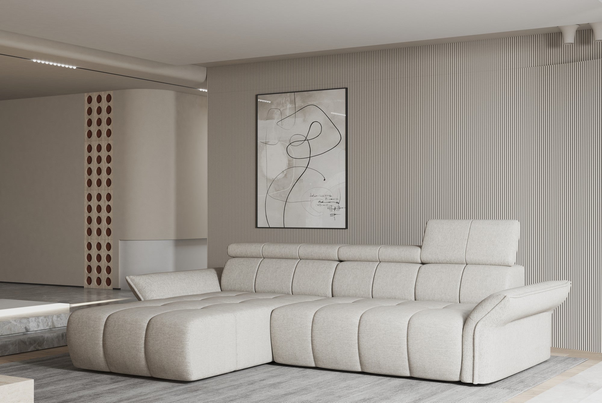 Coltar ENZO S, personalizabil, cu lada depozitare si reglaj electric, 282x177x107 cm