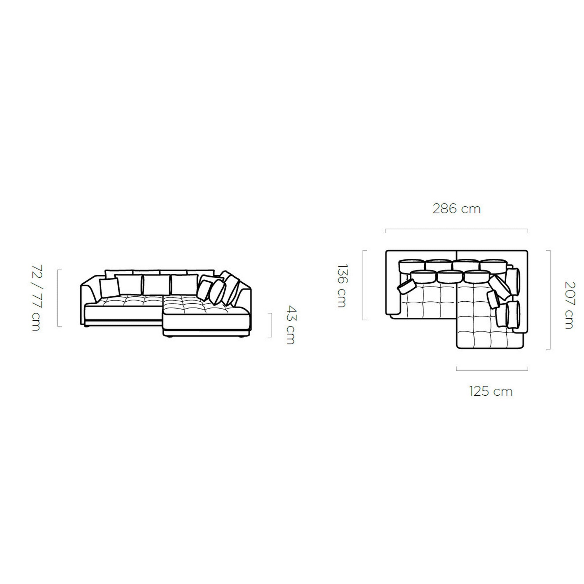 Coltar TIGA, personalizabil, lada depozitare, reglaj electric, 286x207x72/77 cm