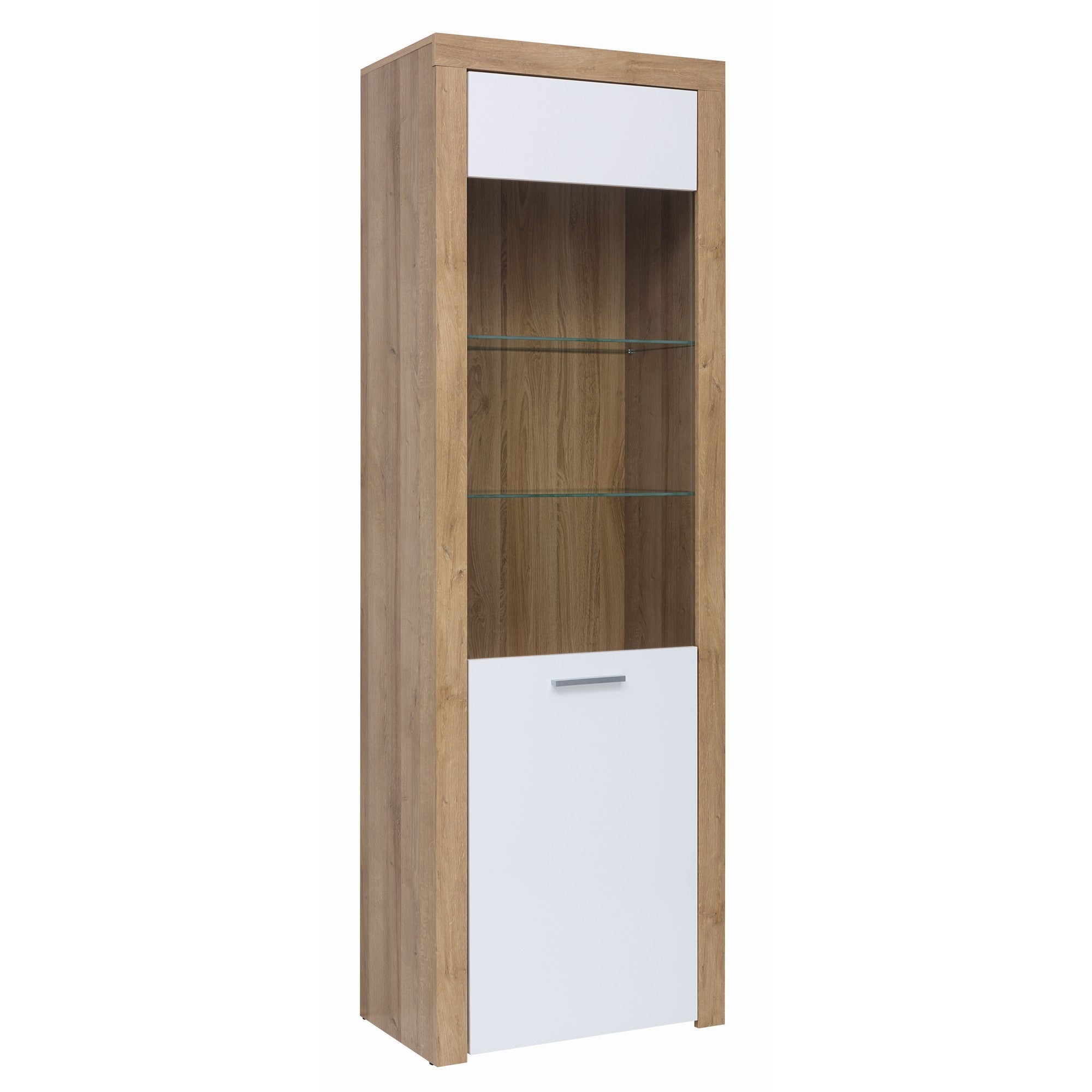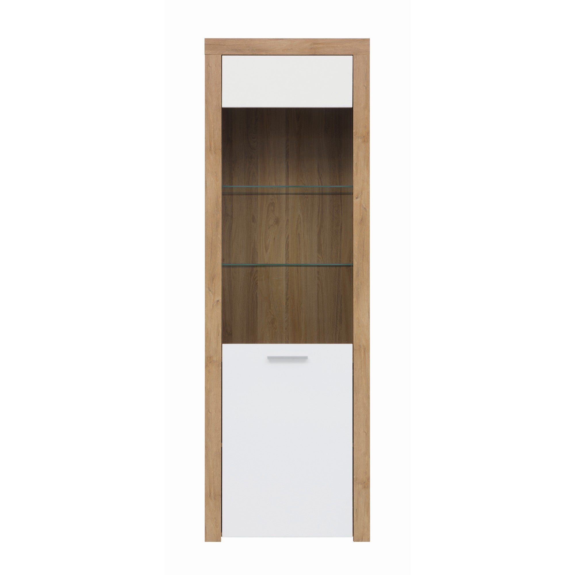 Vitrina living alb lucios cu stejar riviera Balder, 62X39X192 CM