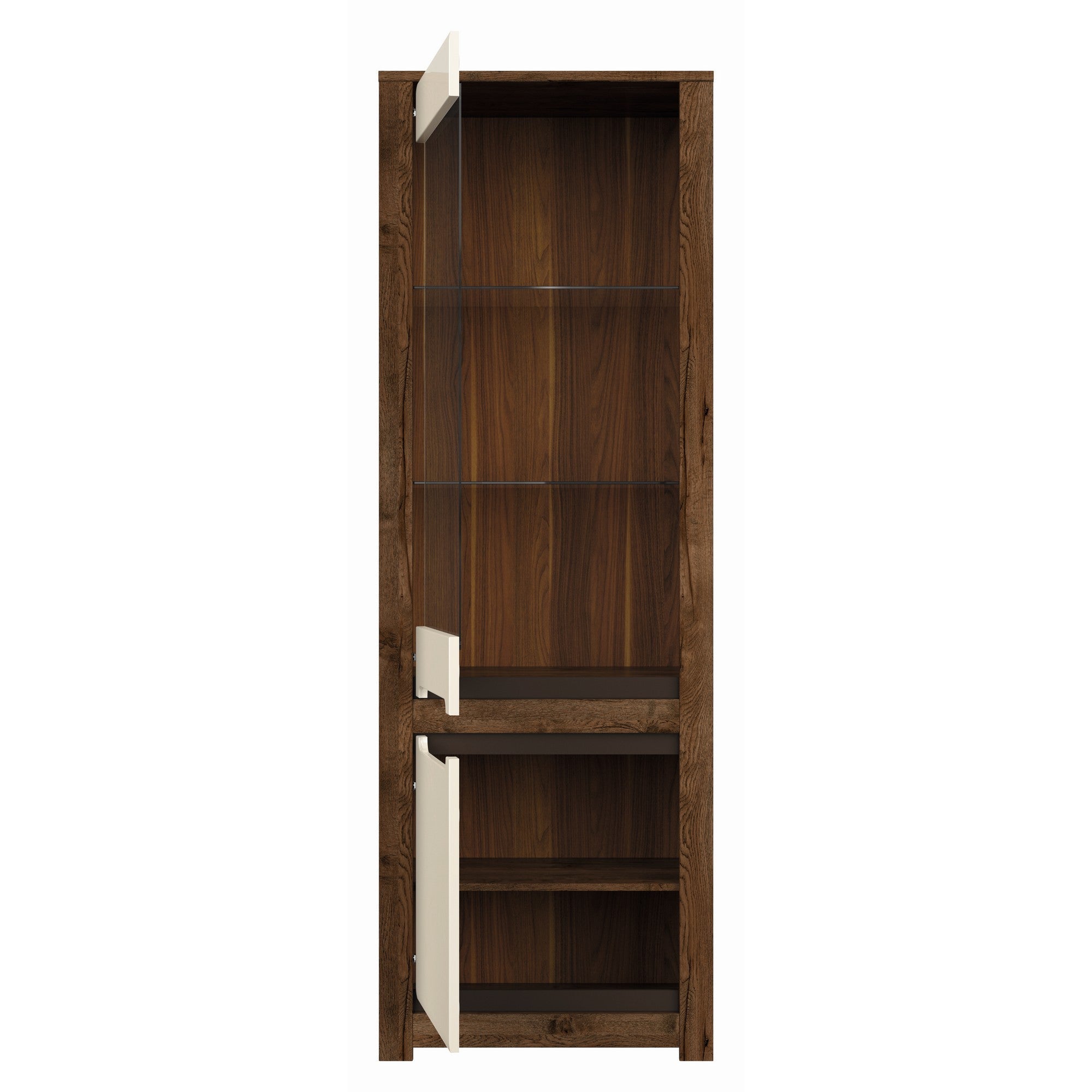 Deoarece aceste vitrine livinguri lucioase Ruso se găsesc in diferite forme, perfecte pentru amenajarea unui living confortabil și spațios. Confortul este oferit de accesoriile de înaltă calitate, echipate cu sistem de închidere silențios. Vitrina înaltă și foarte spațioasă, este ideală pentru expunerea obiectelor decorative. Opțional se poate achiziționa și sistemul de iluminare cu LED.