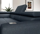 Coltar BAGGIO, sezlong stanga, stofa catifelata gri - Monolith 85, 280x196x76/100 cm, reglaj electric, incarcator wireless, lada depozitare, tetiere reglabile