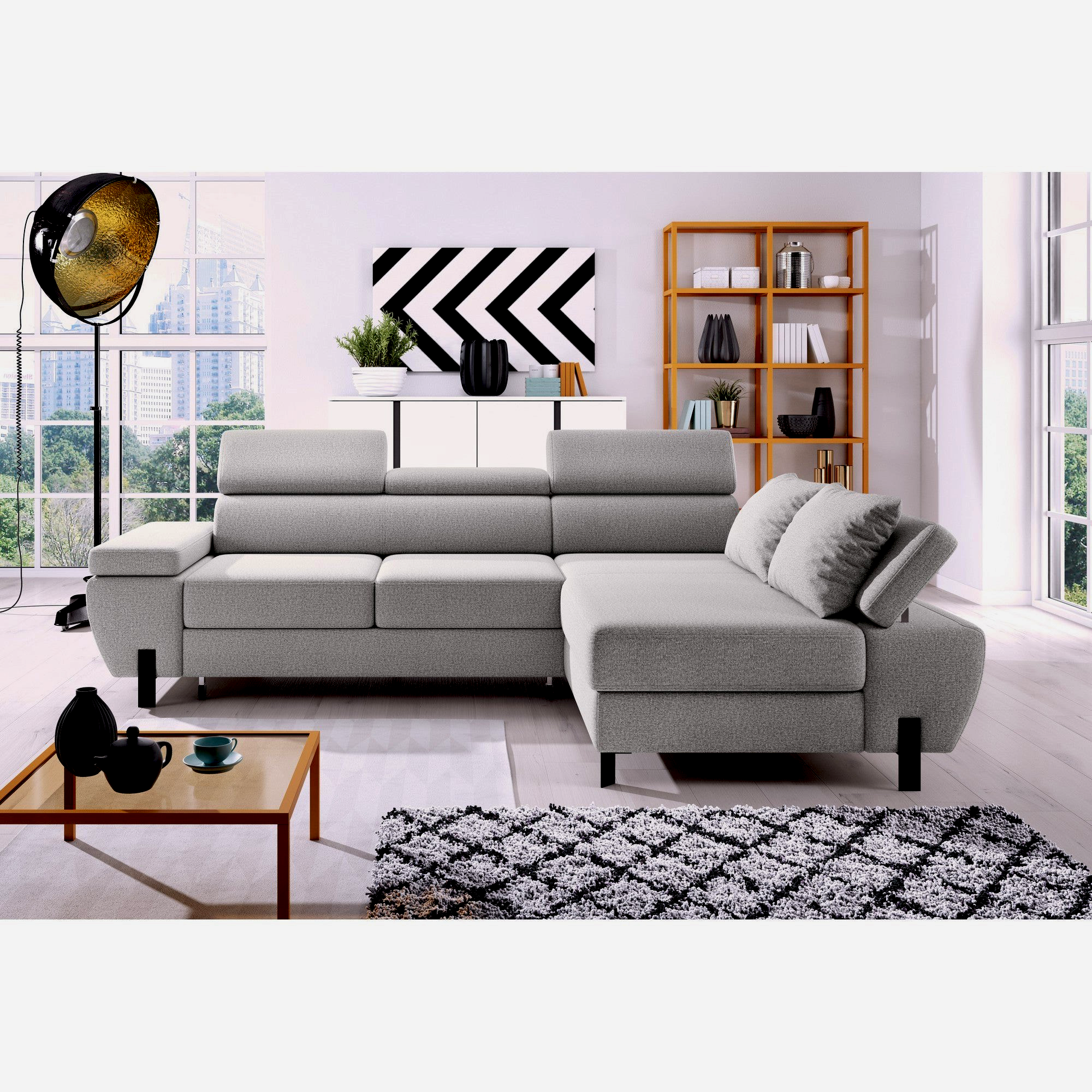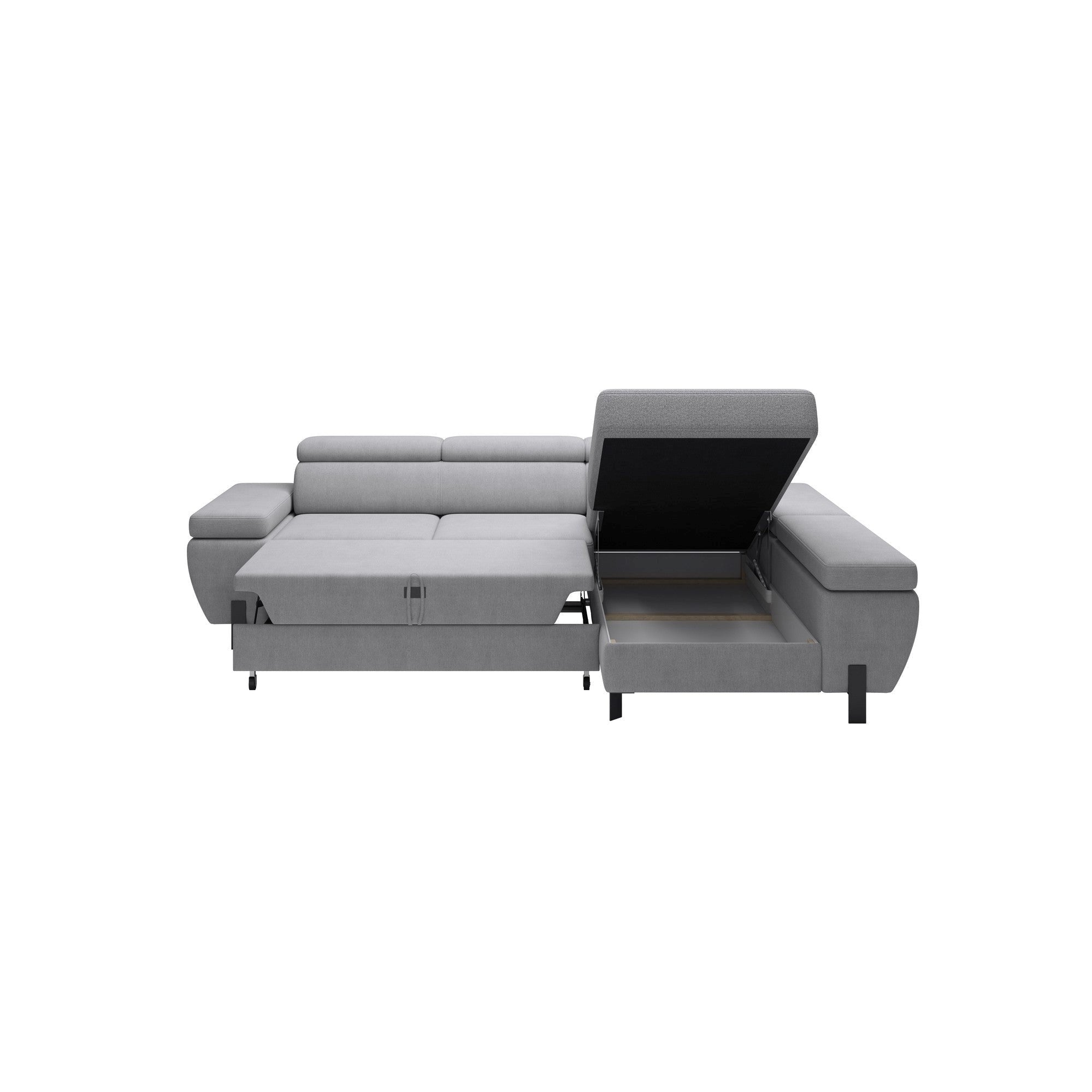 Coltar MOLINA MINI, sezlong dreapta, stofa gri deschis - Austin 18, 277x189x90 cm, extensibil, lada depozitare