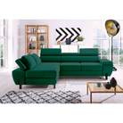 Coltar MOLINA MINI, sezlong stanga, stofa catifelata verde - Monolith 37, 277x189x90 cm, extensibil, lada depozitare