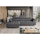 COLTAR SELVA MINI, SEZLONG STANGA, STOFA GRI - AUSTIN 19, 270X97/173X75/95 CM, EXTENSIBIL, CU LADA DE DEPOZITARE, TETIERE REGLABILE