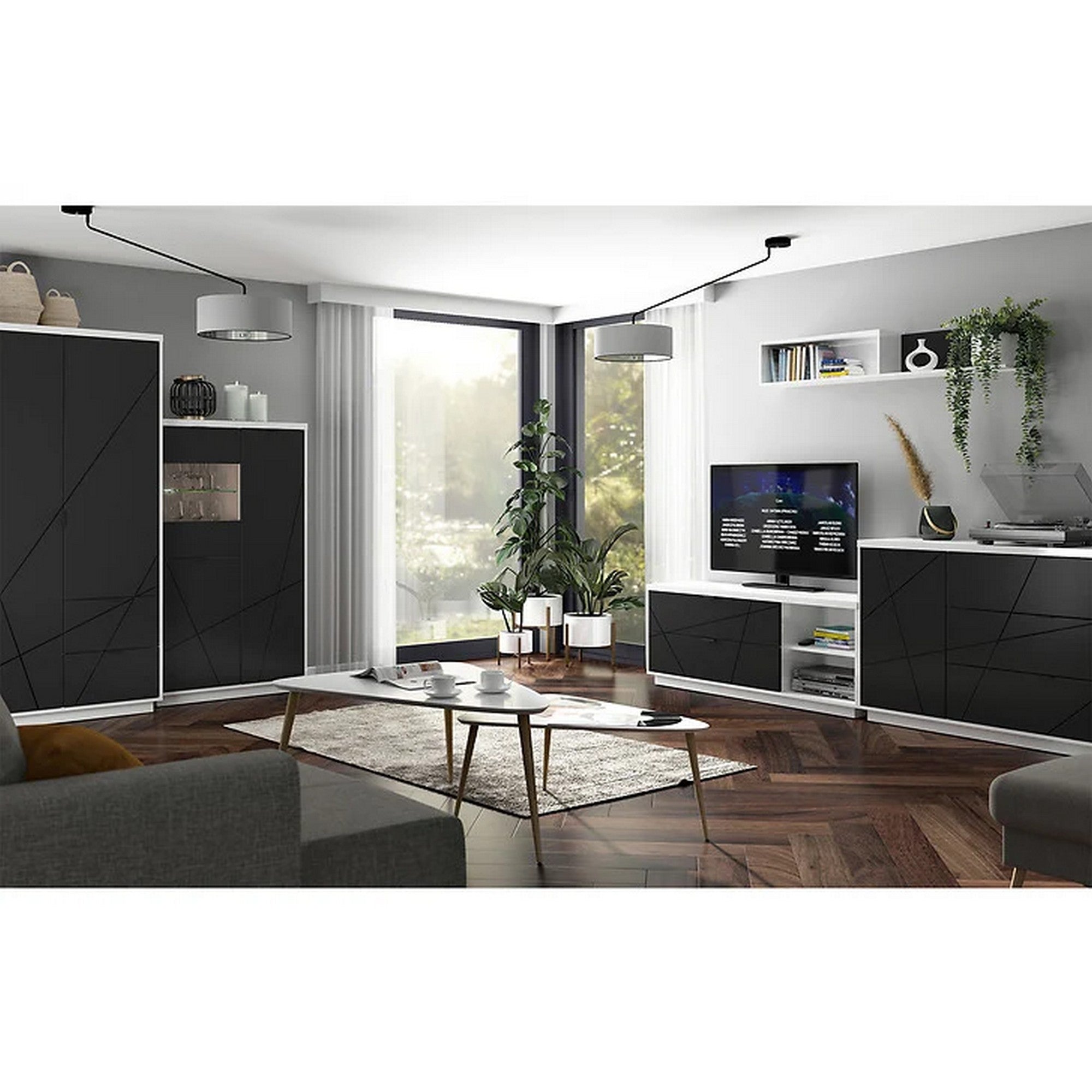 COMODA FORN, ALB LUCIOS/NEGRU MAT, PAL, 156X42.5X93 CM