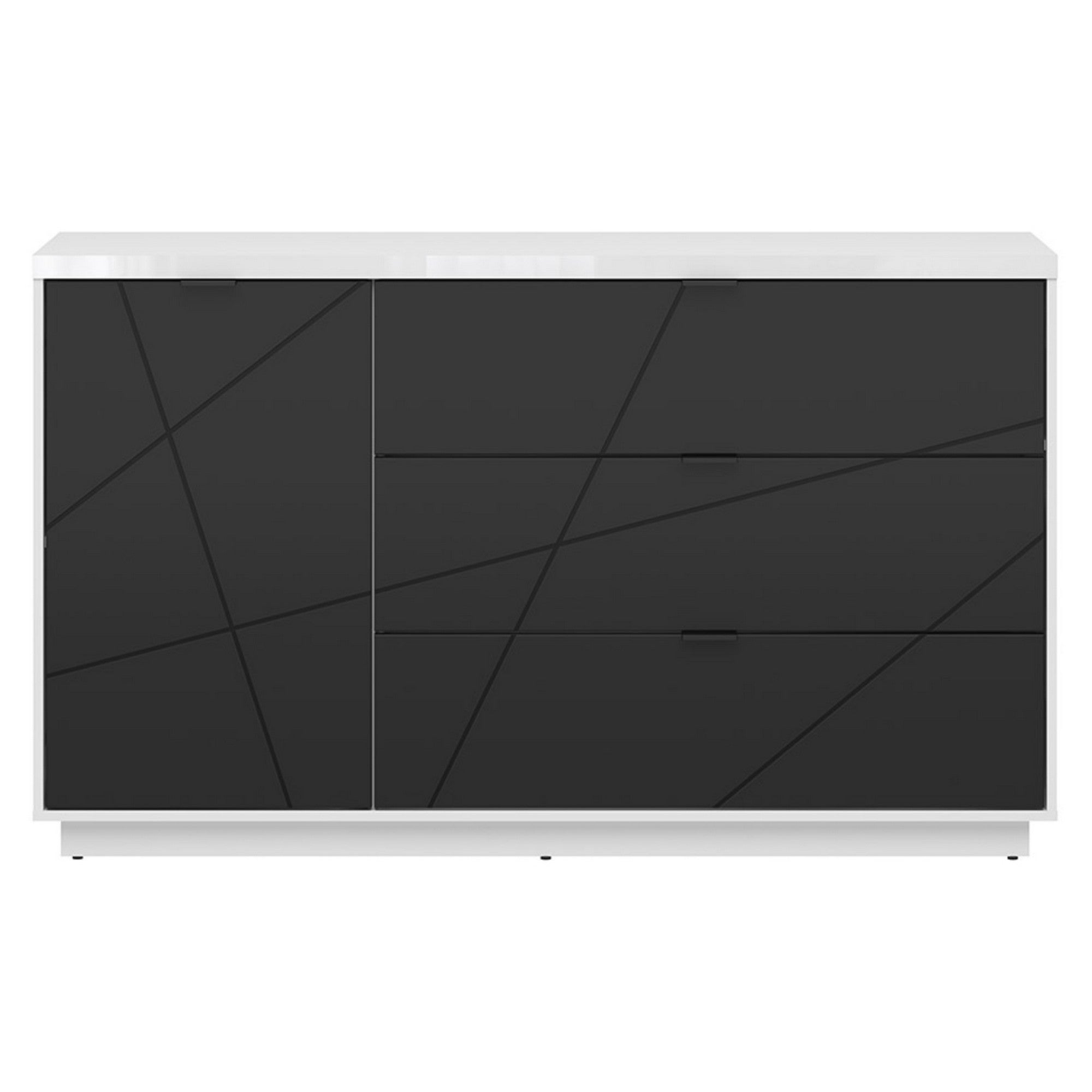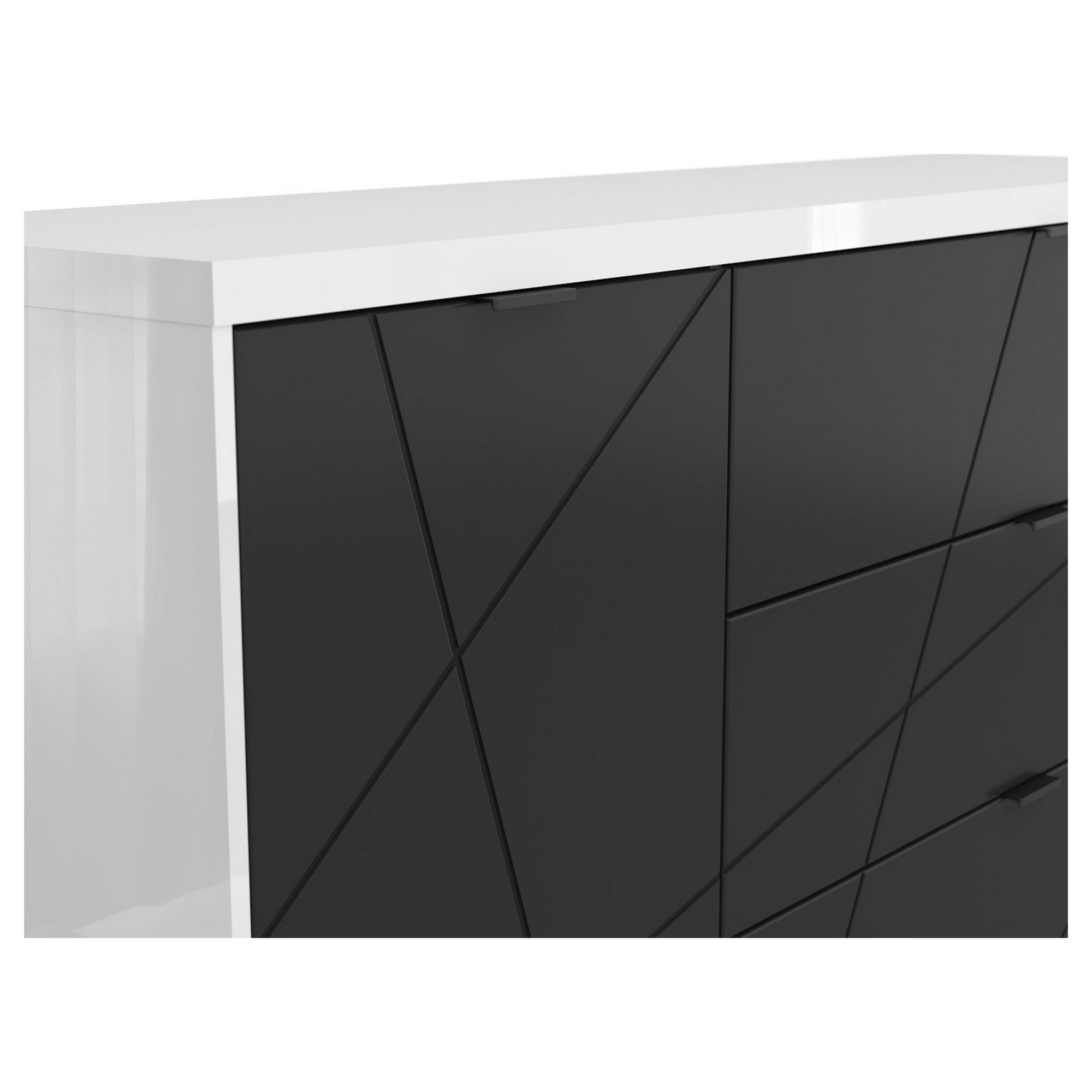 Comoda FORN, alb lucios/negru mat, PAL, 156x42.5x93 cm
