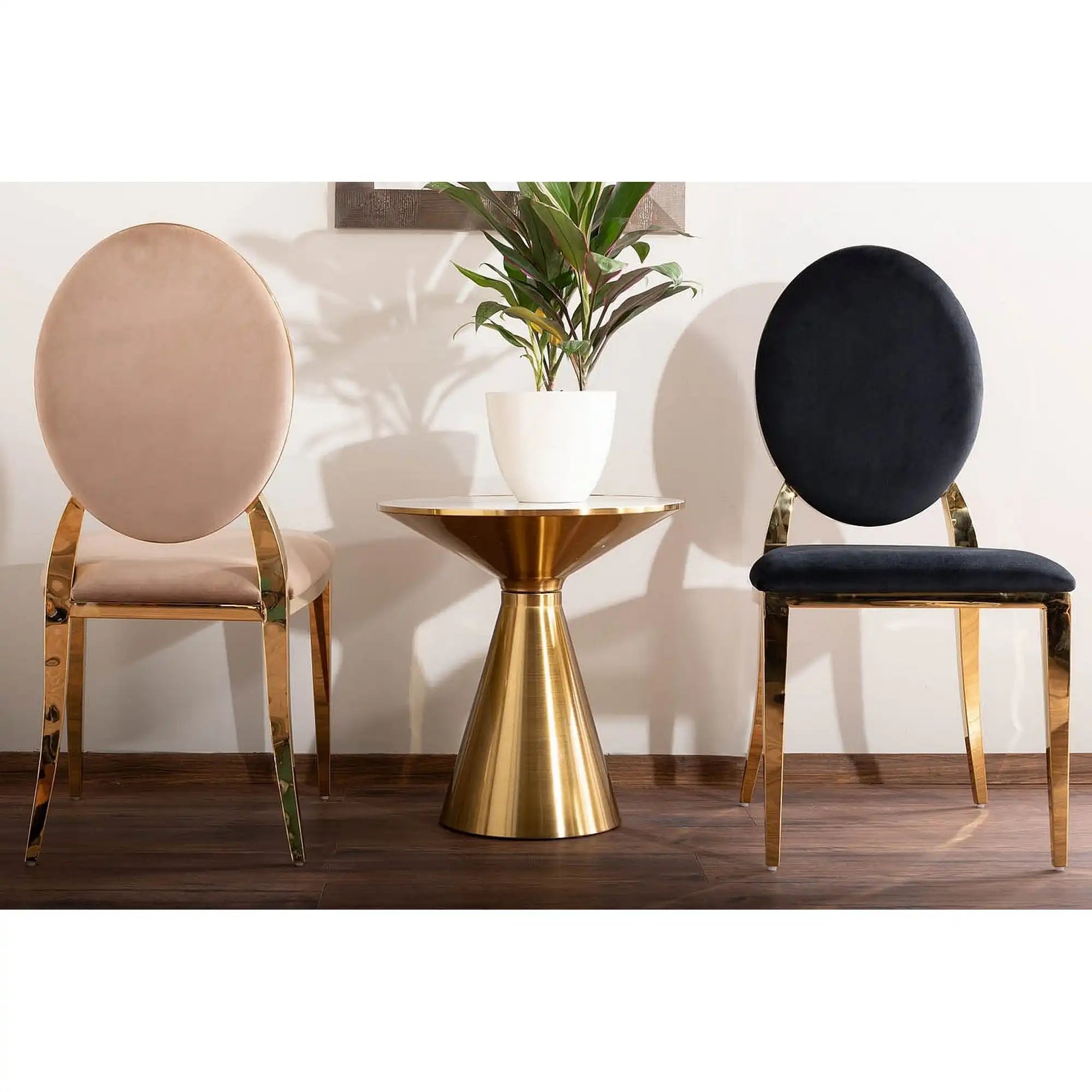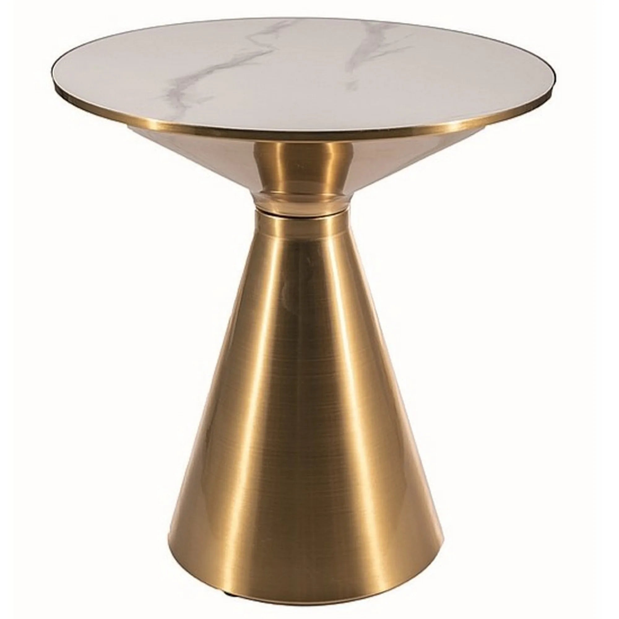 Masuta cafea ARIES, alb lucios/auriu, ceramica/metal, 50x53 cm