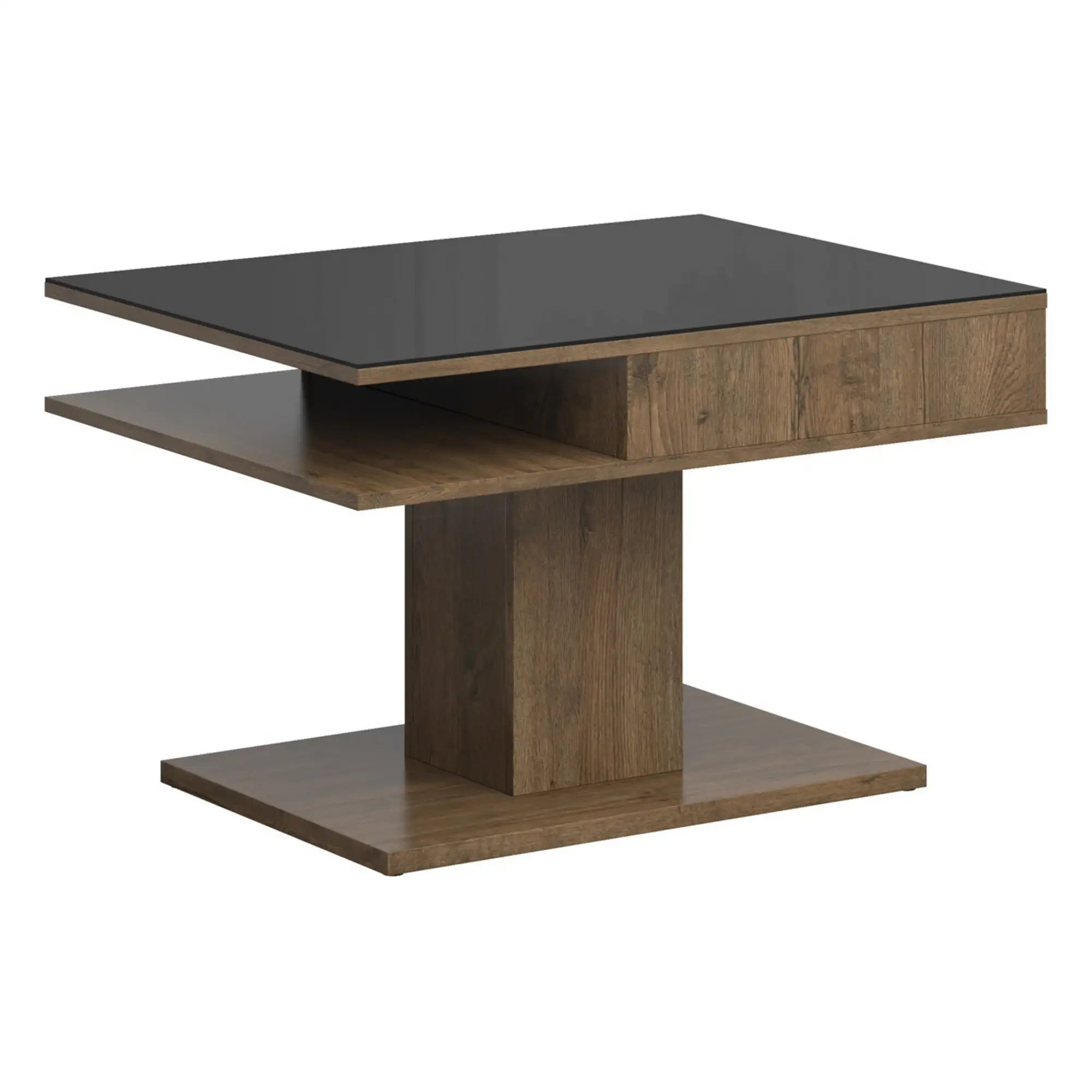 Masuta cafea CAMPO, stejar/negru, PAL/sticla, 80x60x50 cm