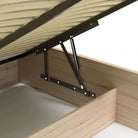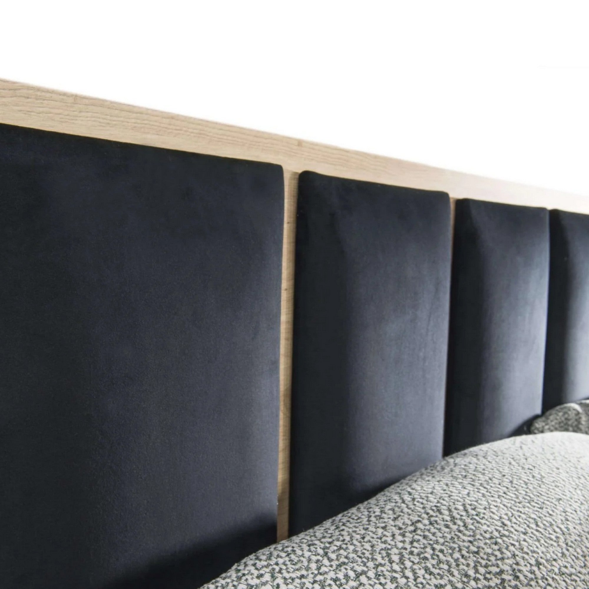PAT CALI 160X200, STEJAR ARTISAN/NEGRU, PAL/STOFA CATIFELATA, CU SPATIU DEPOZITARE, 167.3X209X100 CM