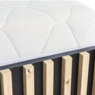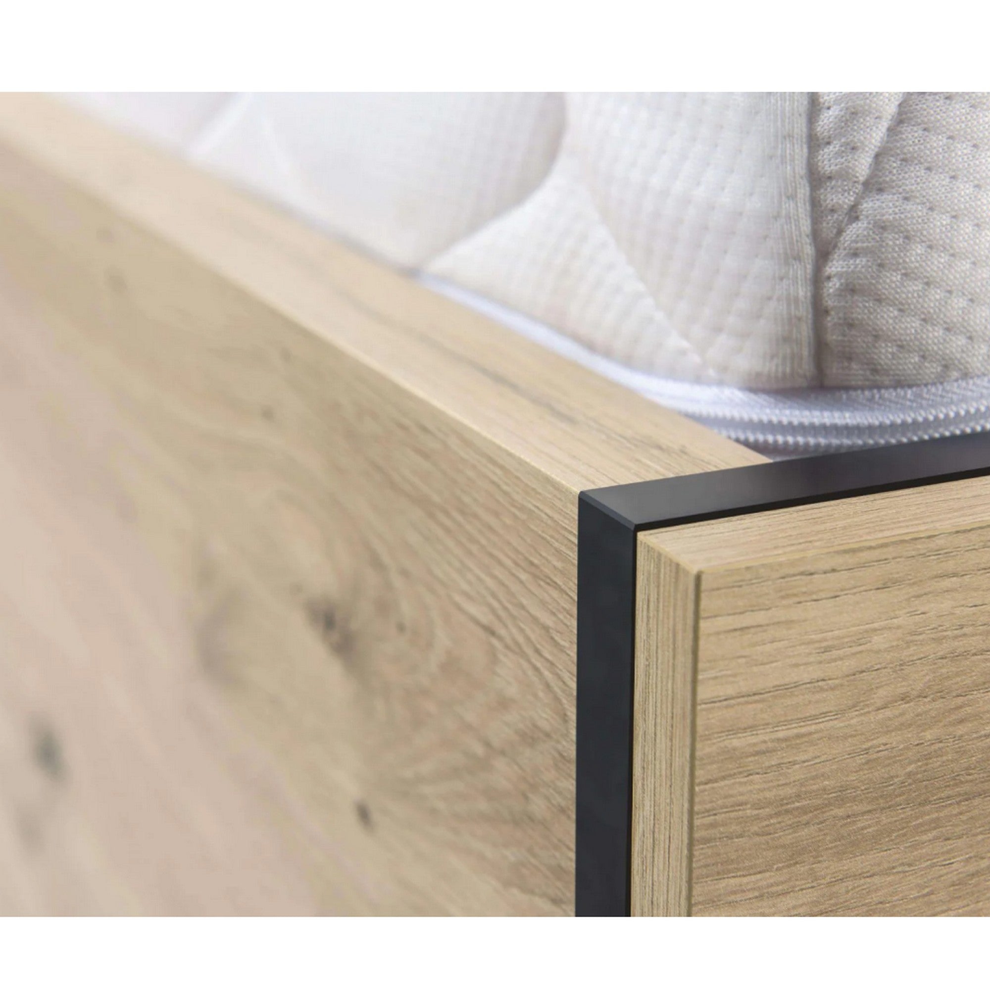 Pat CALI 160x200, stejar artisan/negru, PAL/stofa catifelata, cu spatiu depozitare