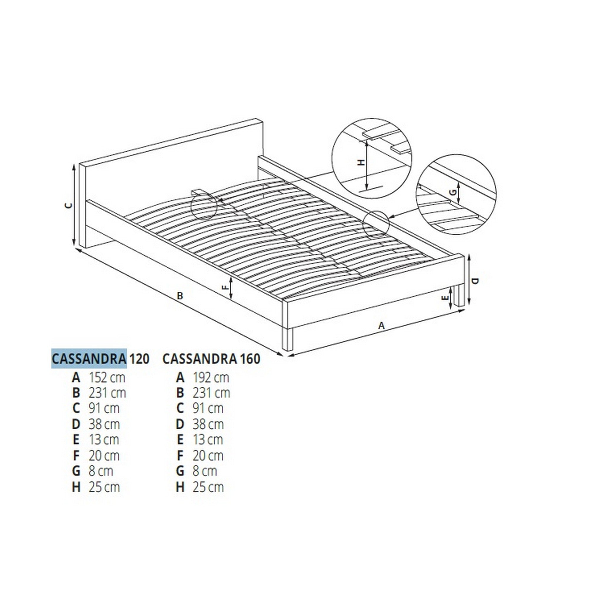 - Pentru saltea 120 x 200 cm : Lungime: 231 cm, latime: 152 cm, inaltime capatai: 91 cm