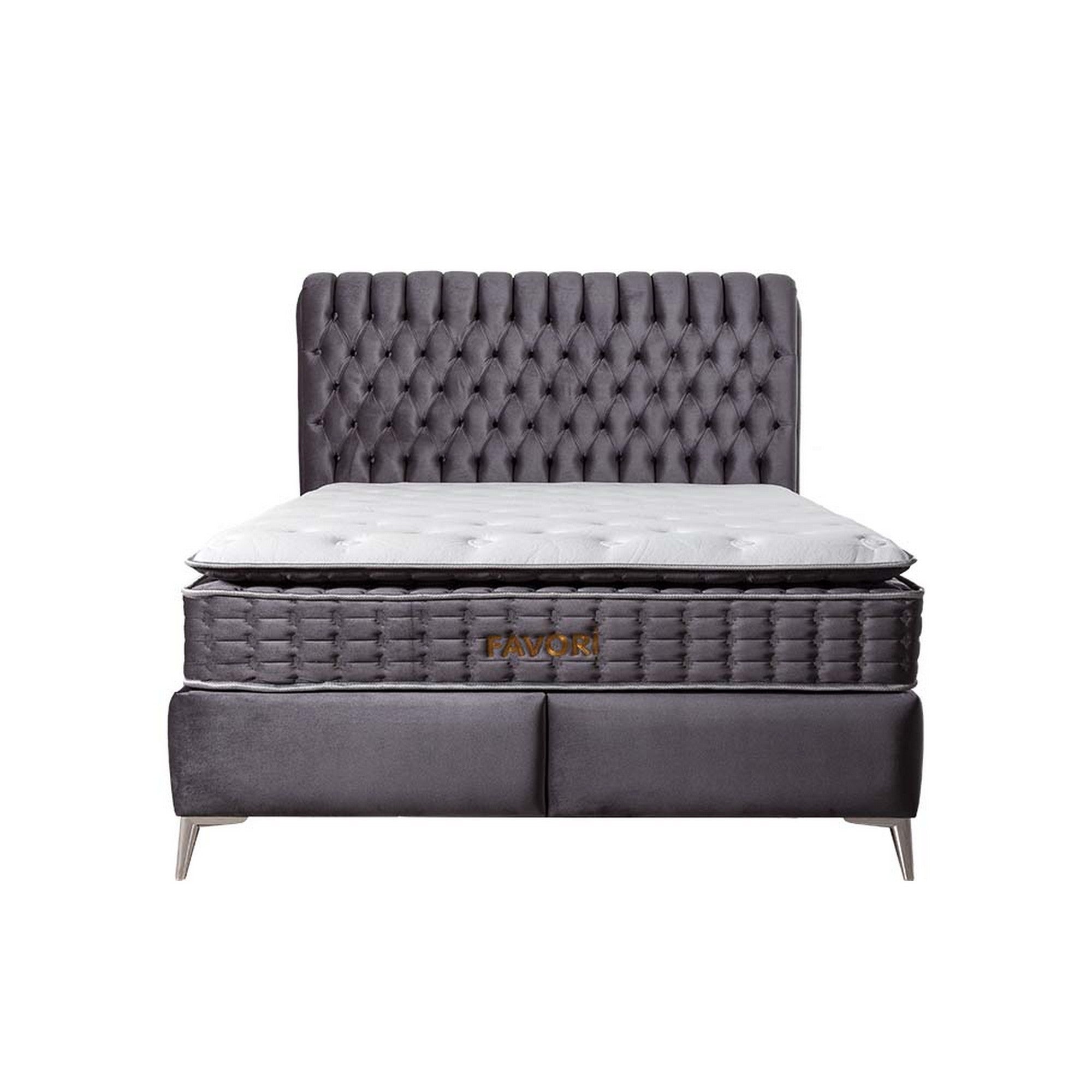 Pat FAVORI 160x200, stofa catifelata gri antracit - BF 16, cu somiera si spatiu depozitare