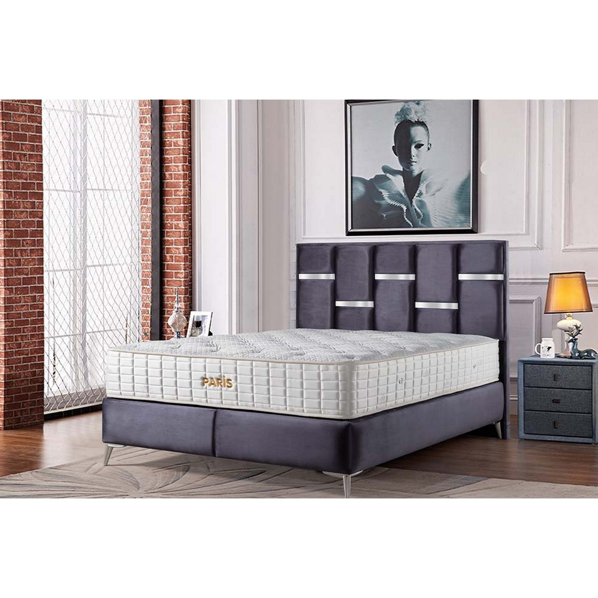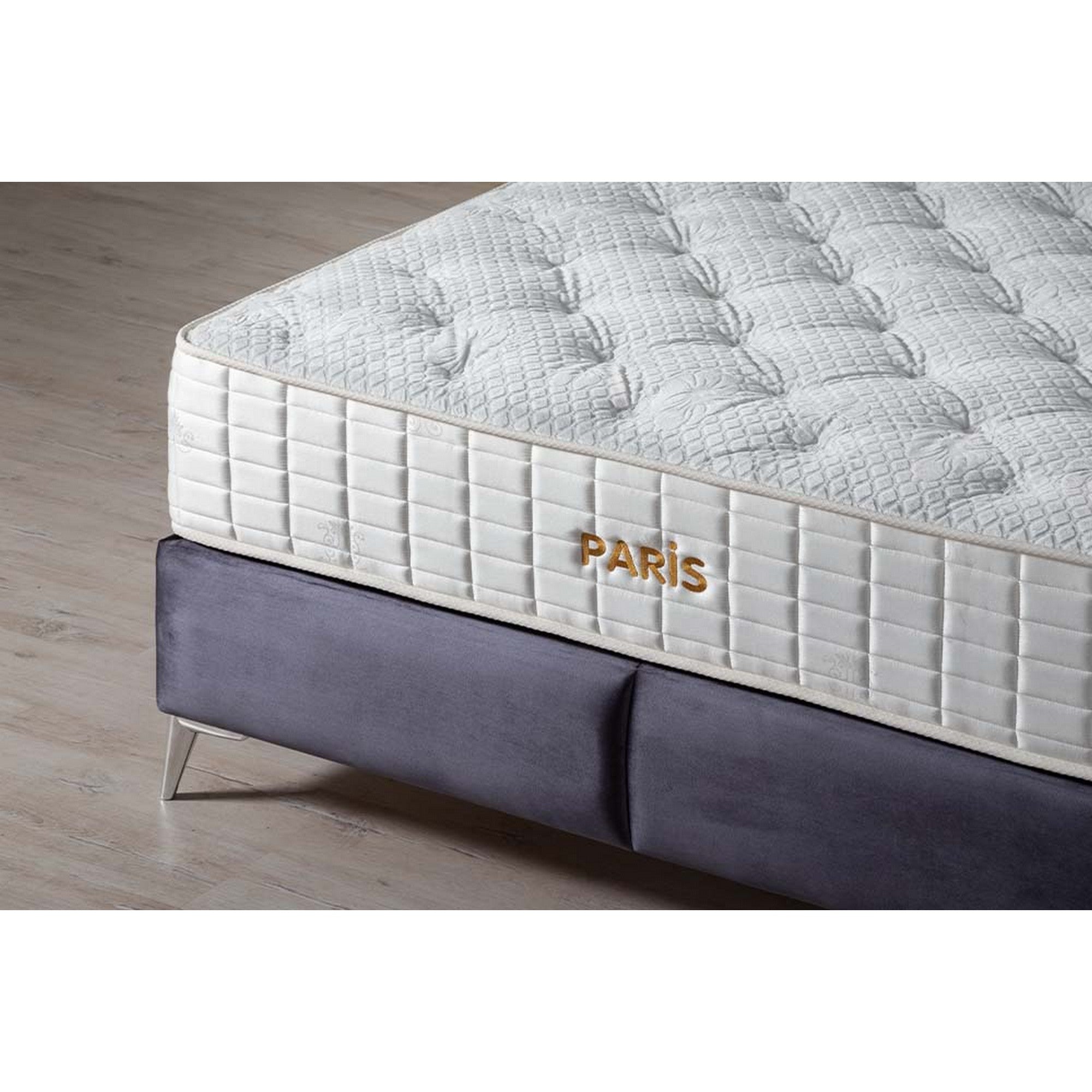Pat PARIS 160x200, stofa catifelata gri - Nil 18, cu somiera si spatiu depozitare