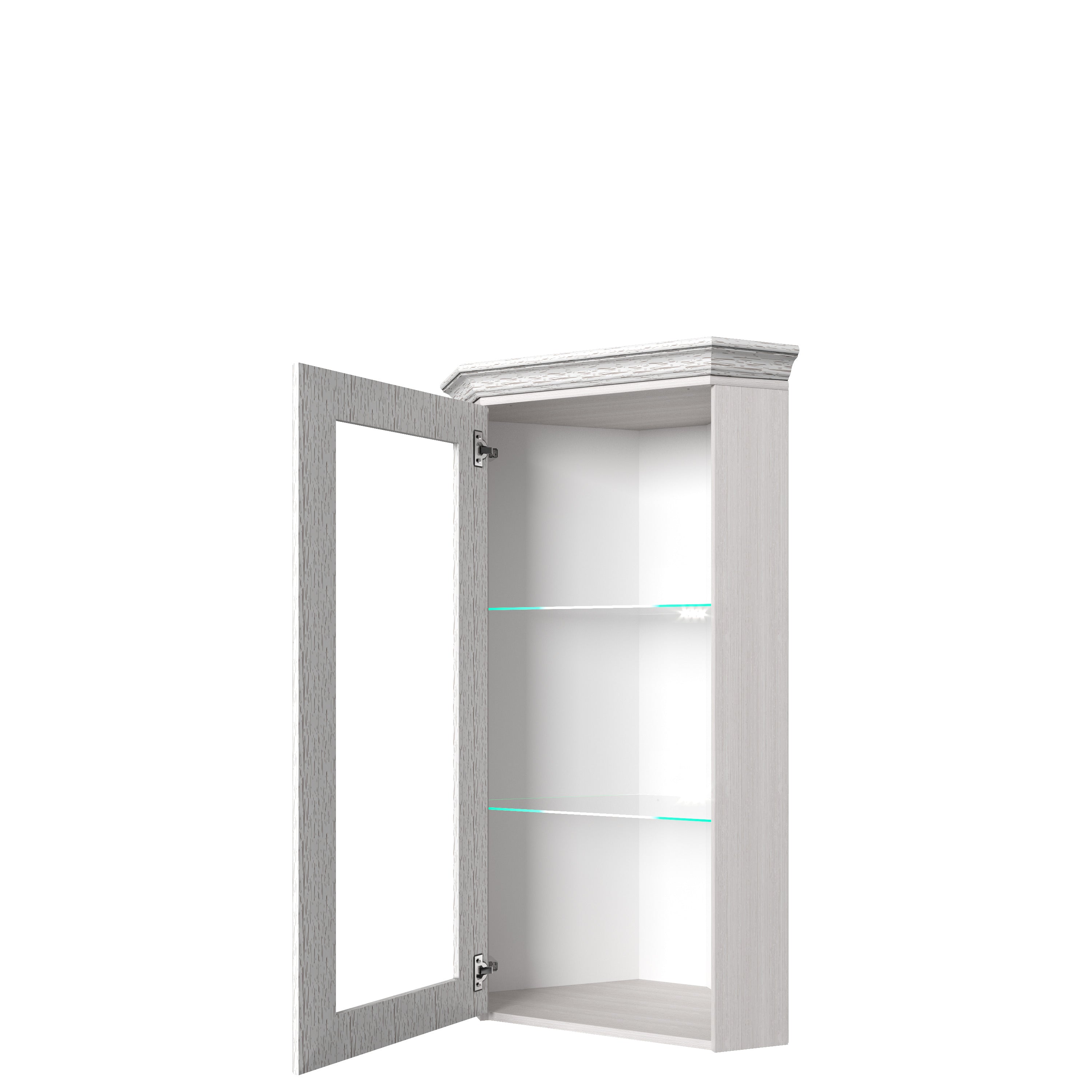 VITRINA DE COLT Tiffany (Tiffy), ALB VINTAGE, PAL SI MDF, 52x52x122 CM