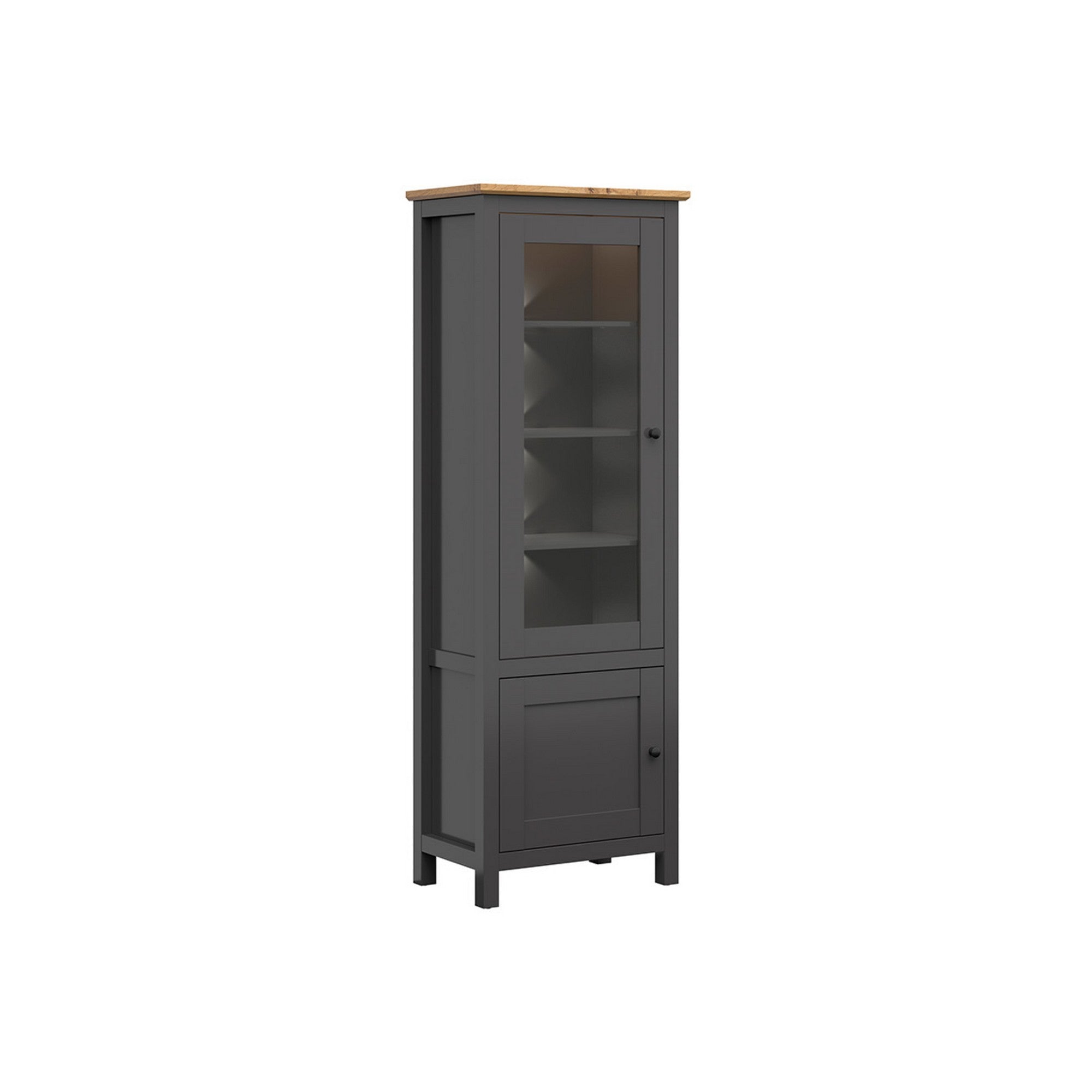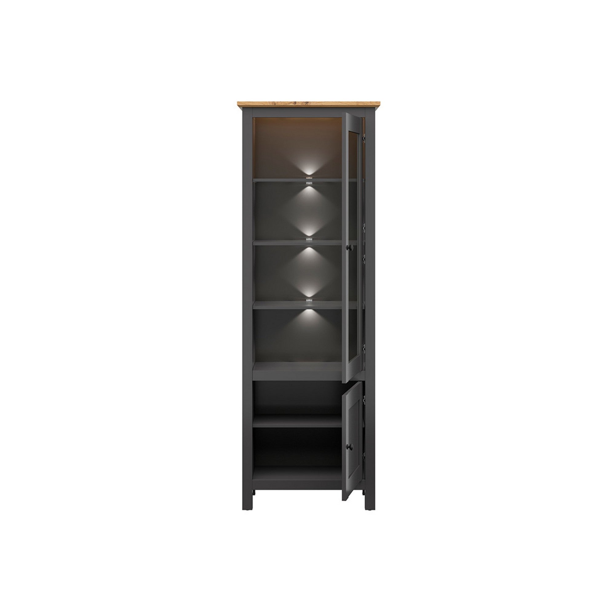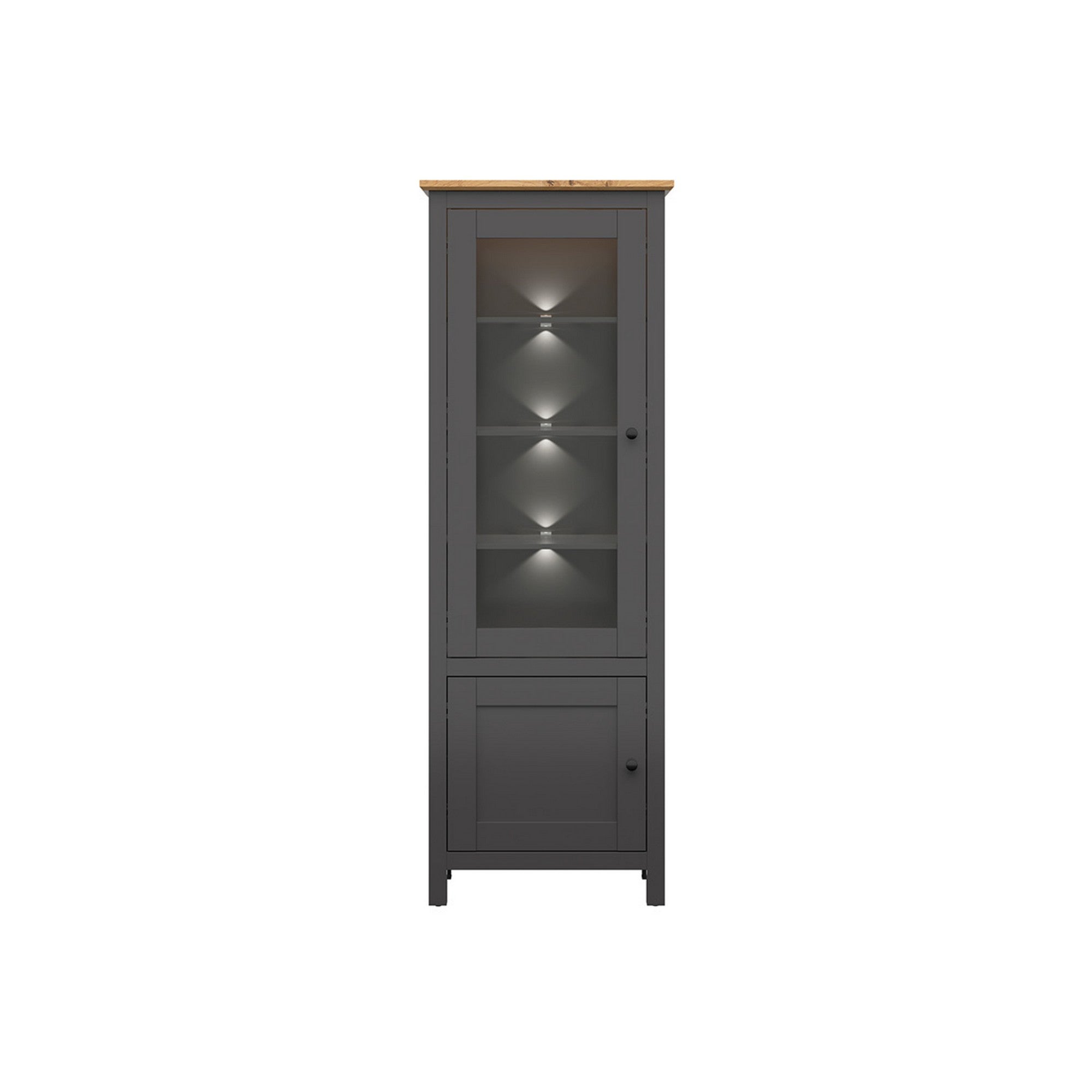 VITRINA HESEN, GRI GRAFIT/STEJAR ARTIZANAL, PAL, CU ILUMINARE LED, 71X44X203 CM