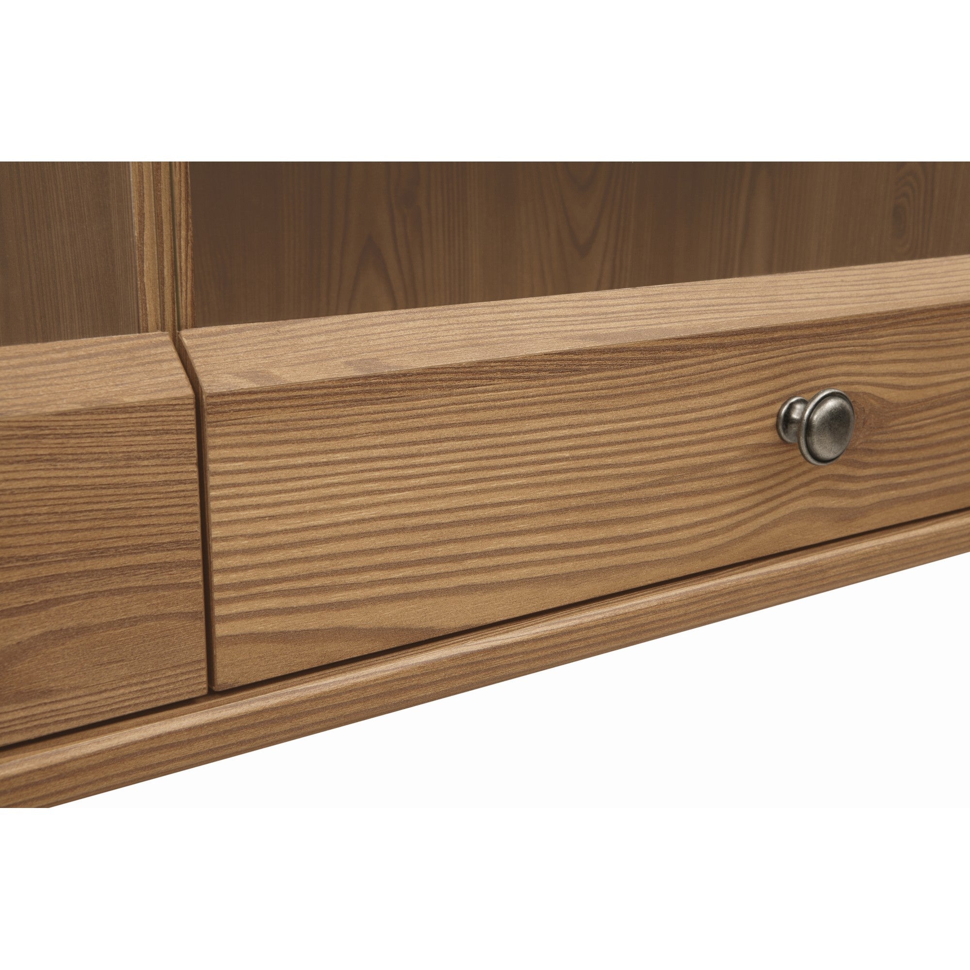 Vitrina Bergen nu este doar impresionanta, ci și practica. În spatele celor 3 fronturi de sticlă, puteți afișa orice decoratiune. Sticla securizată protejează conținutul carcasei de depunerile de praf.